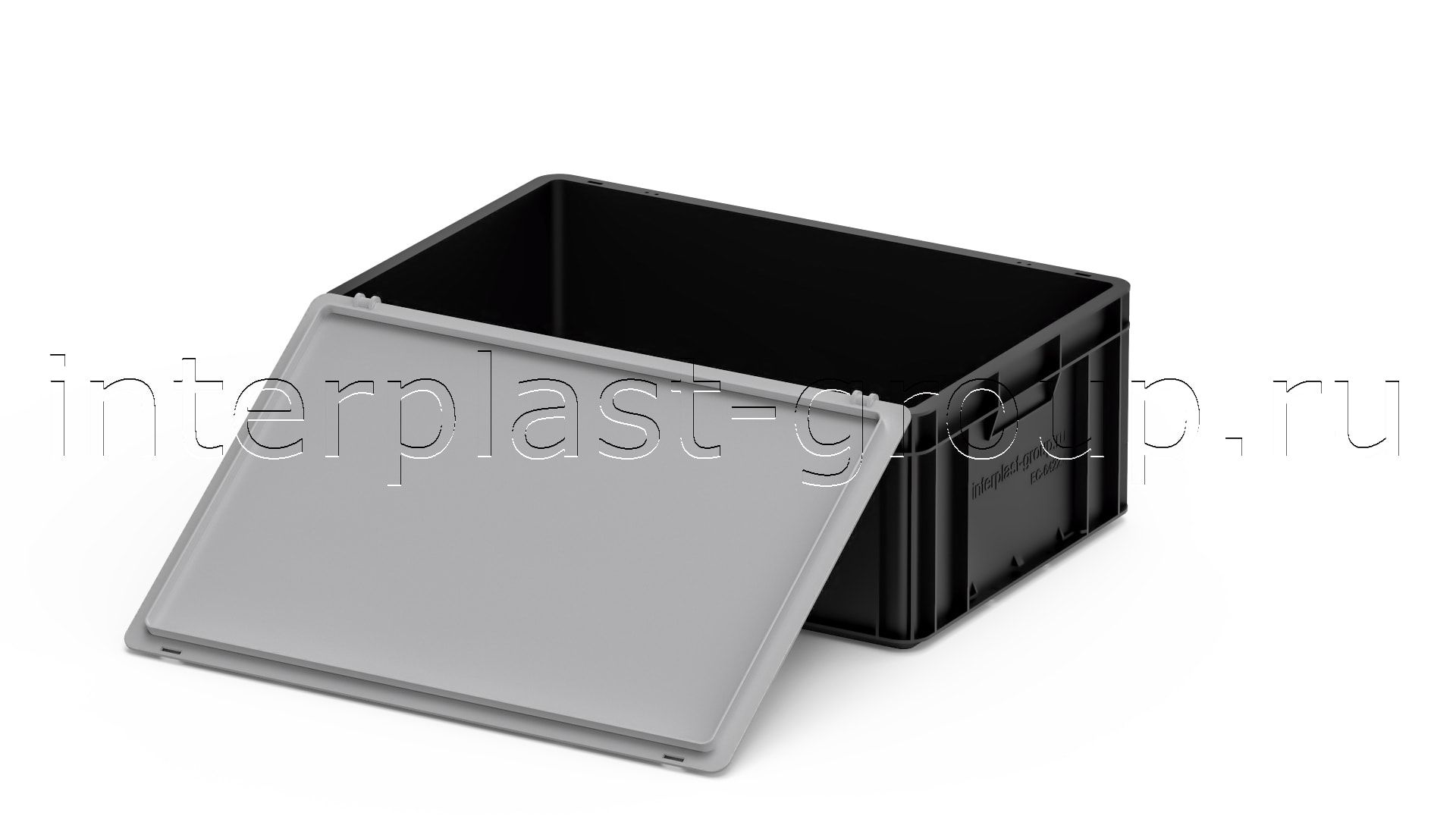 Евроконтейнер закрытые ручки/усиленное дно (черный), 600x400x220 мм