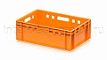 Данная модель применяется как контейнер универсальный и подходит для различных видов продукции. На практике ящик востребован как пищевой контейнер и контейнер для продуктов, включая ящик для мяса серии Е и ящик для колбасных изделий. Стандарт евростандарта позволяет использовать изделие как евроконтейнер в составе унифицированных систем хранения и транспортировки.
