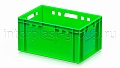 Зелёный ящик серии Е-3 используется как ящик для хранения и контейнер для хранения в холодильных и морозильных камерах, а также как ящик для склада и складской ящик при работе с крупными партиями продукции. Он удобен как ящик для транспортировки за счёт устойчивой конструкции и возможности штабелирования.