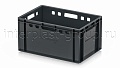 Изделие применяется как контейнер универсальный и востребовано в роли пищевого контейнера и контейнера для продуктов, включая ящик для мяса серии Е и ящик для колбасных изделий. Благодаря стандартному европейскому формату данный ящик относится к категории евроконтейнеров и легко интегрируется в существующие системы хранения и транспортировки.