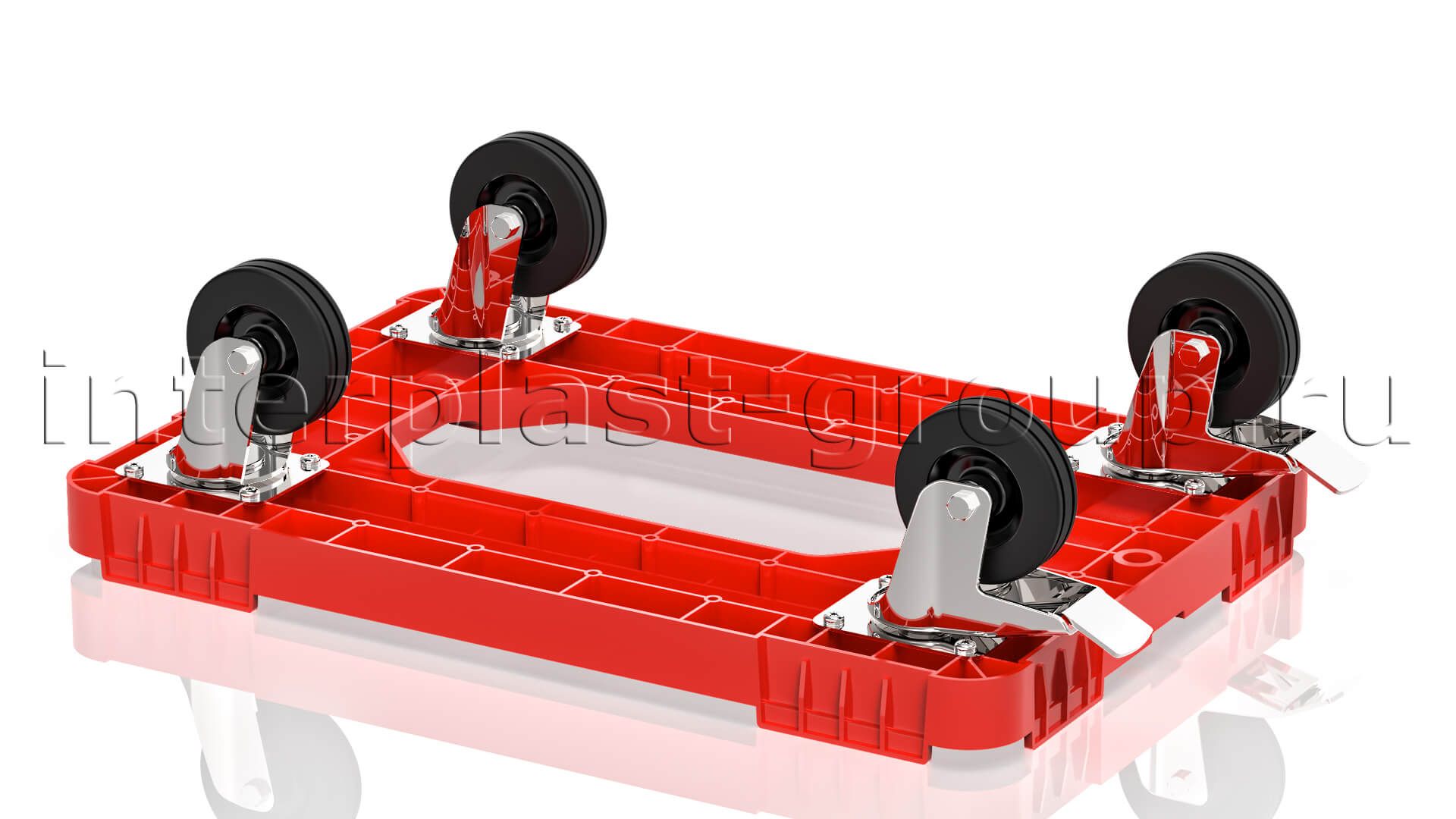Тележка пластиковая с отверстием 2 колеса с тормозом красная в Новочебоксарске