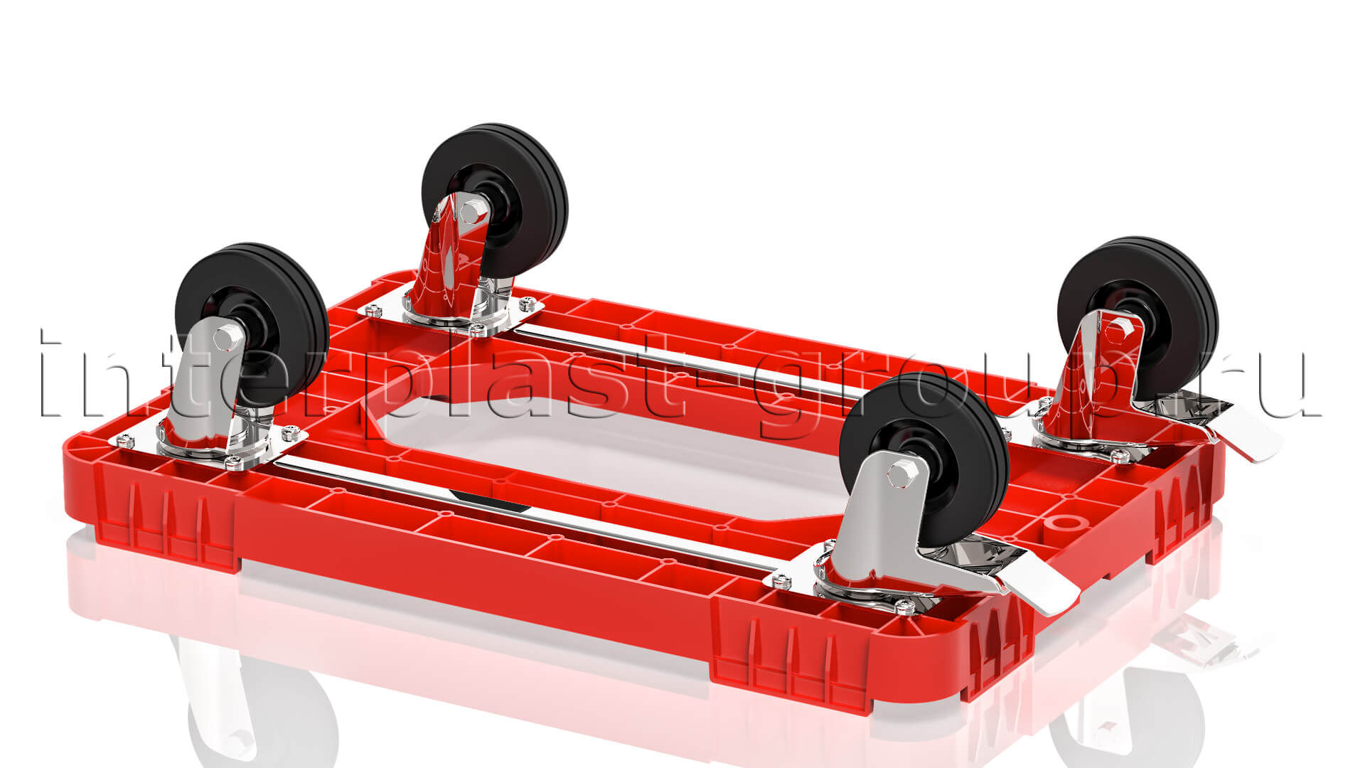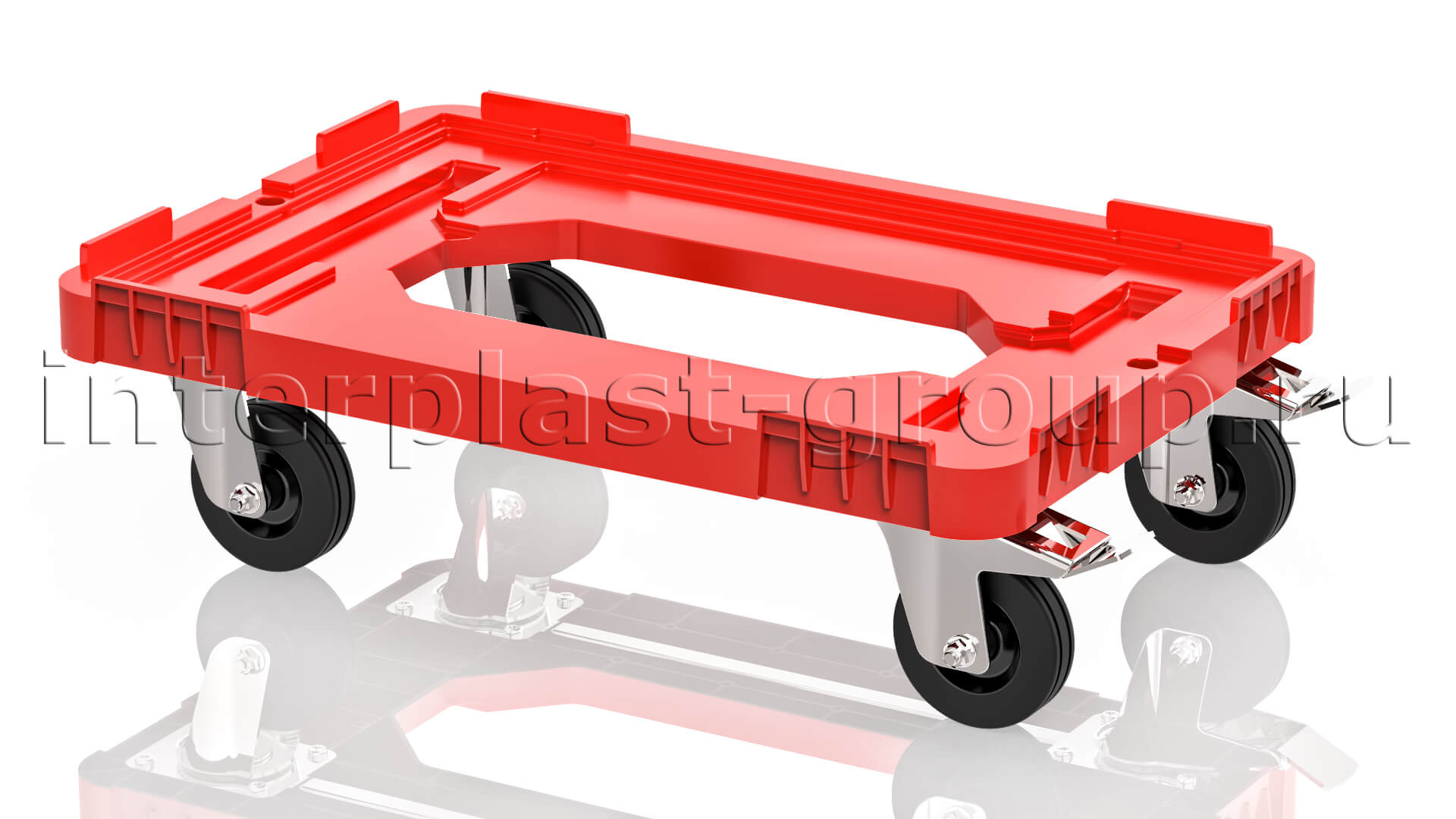 Тележка пластиковая с отверстием 2 колеса с тормозом усиленная красная в Новочебоксарске