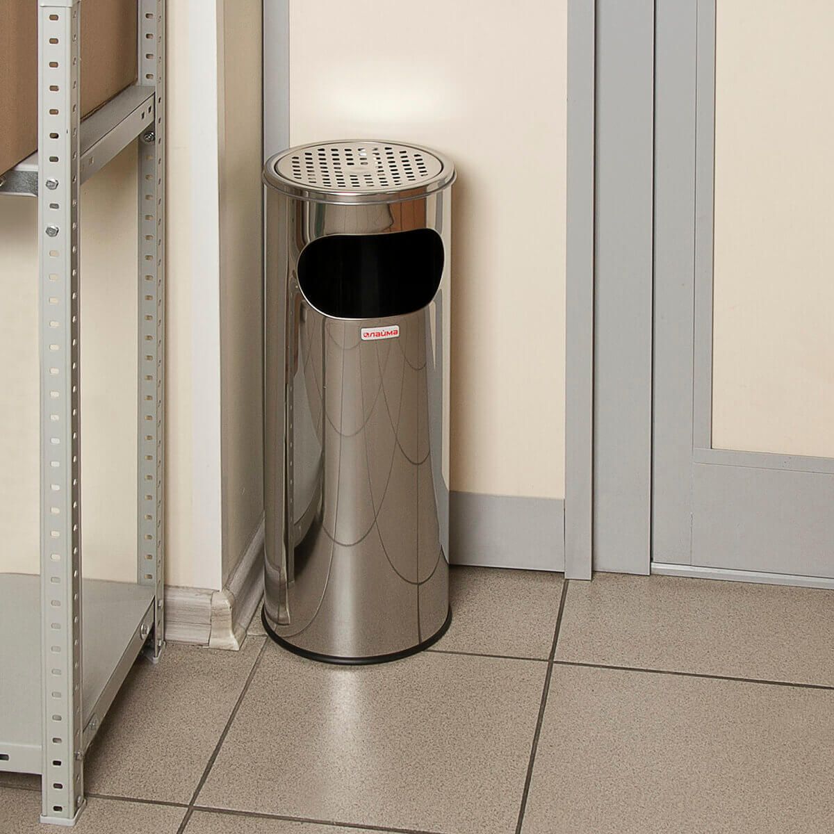 Урна с пепельницей 18 литров, нержавеющая сталь, зеркальная, LAIMA PROFESSIONAL